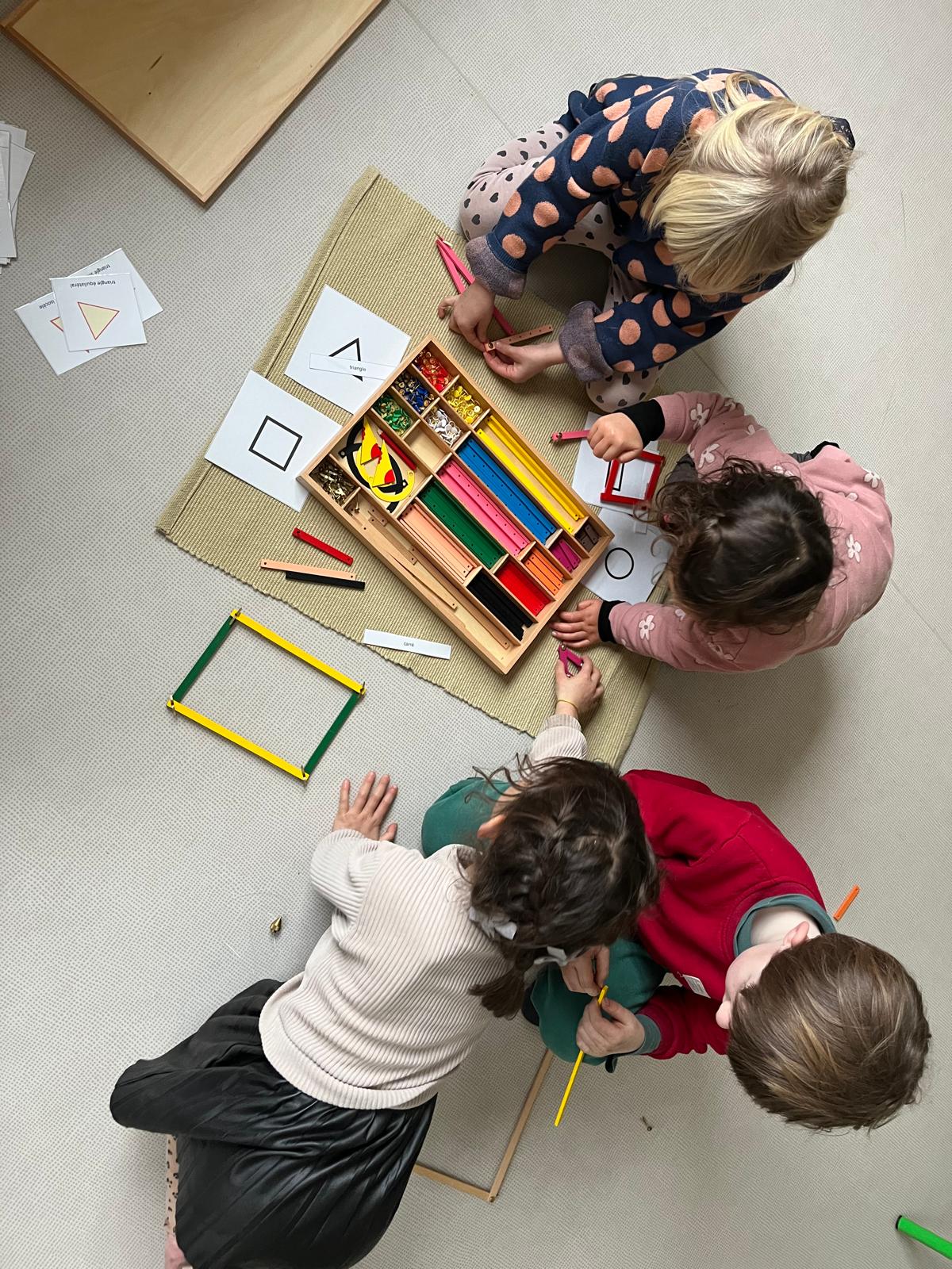 Ici aussi l’environnement est préparé par l’éducateur afin de favoriser l’autonomie de l’enfant. L’ambiance doit s’adapter en conséquence et proposer un espace de découverte, d’observation et d’expérimentation avec du matériel approprié répondant à l’intérêt de l’enfant et cultivant son esprit curieux et chercheur. Le matériel montessori aide aussi l’enfant à mémoriser, développer son esprit de raisonnement et ses capacités d’abstraction. Il est enrichi par les explorations de l’enfant qui n’a de limite que sa curiosité !
